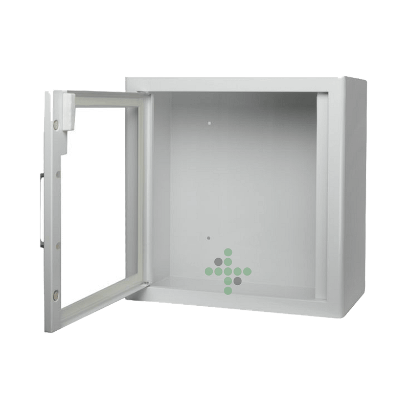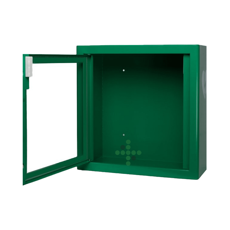 Metalowa szafka na defibrylator bez alarmu.