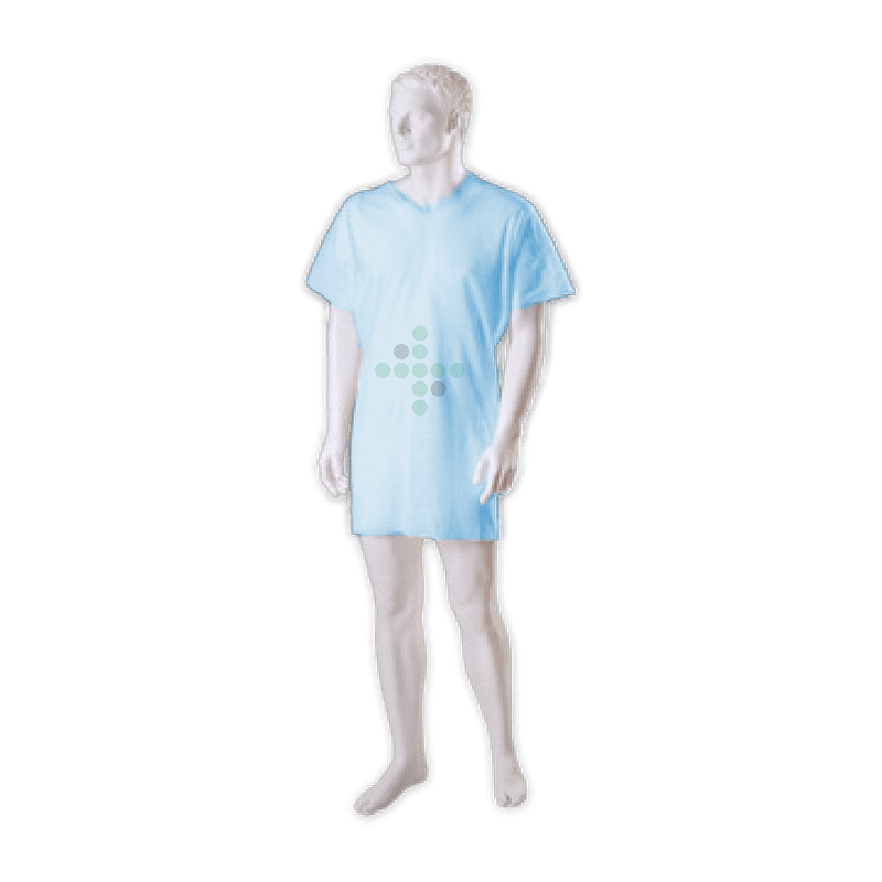 Włókninowy fartuch dla pacjenta, dekolt V, niebieski 10 szt.