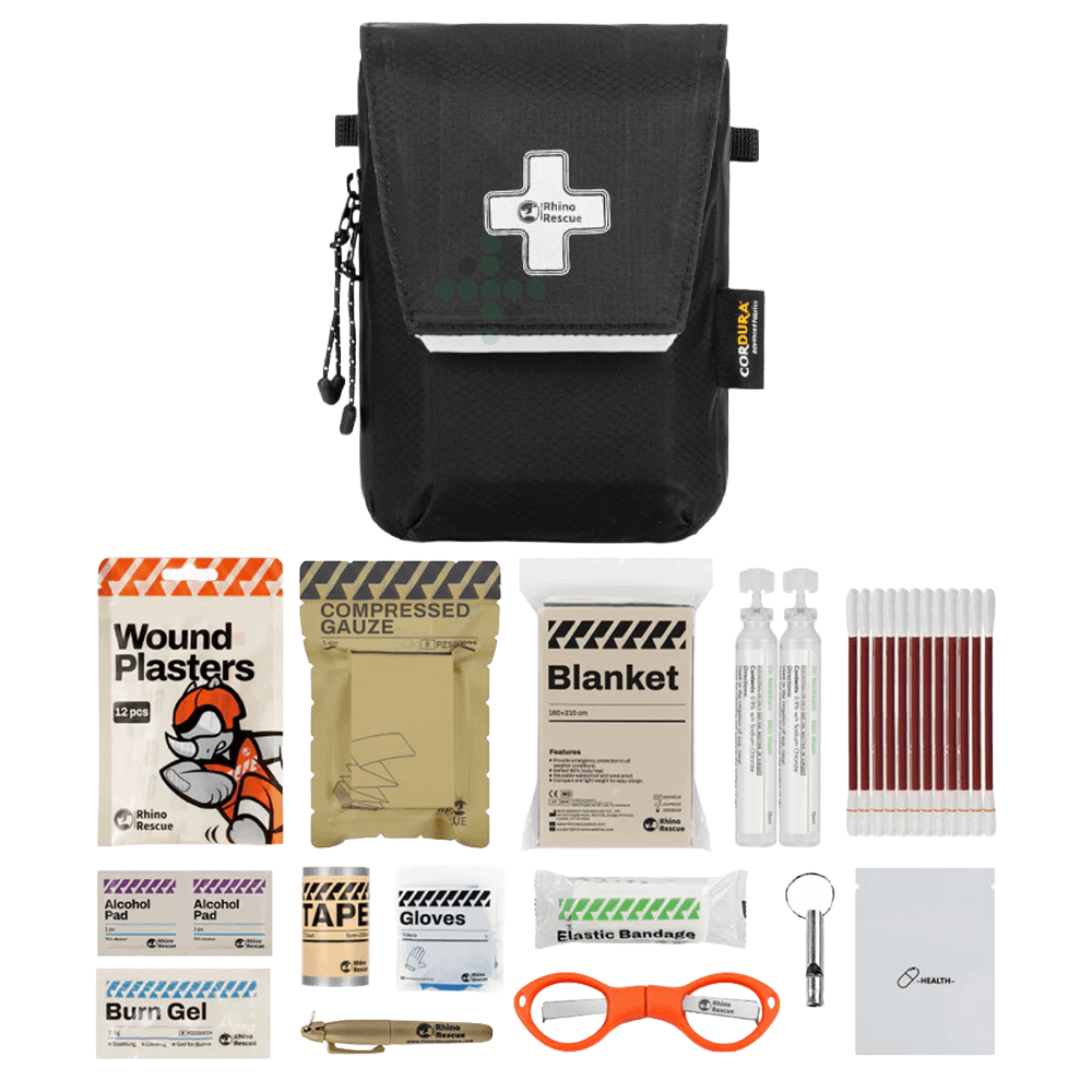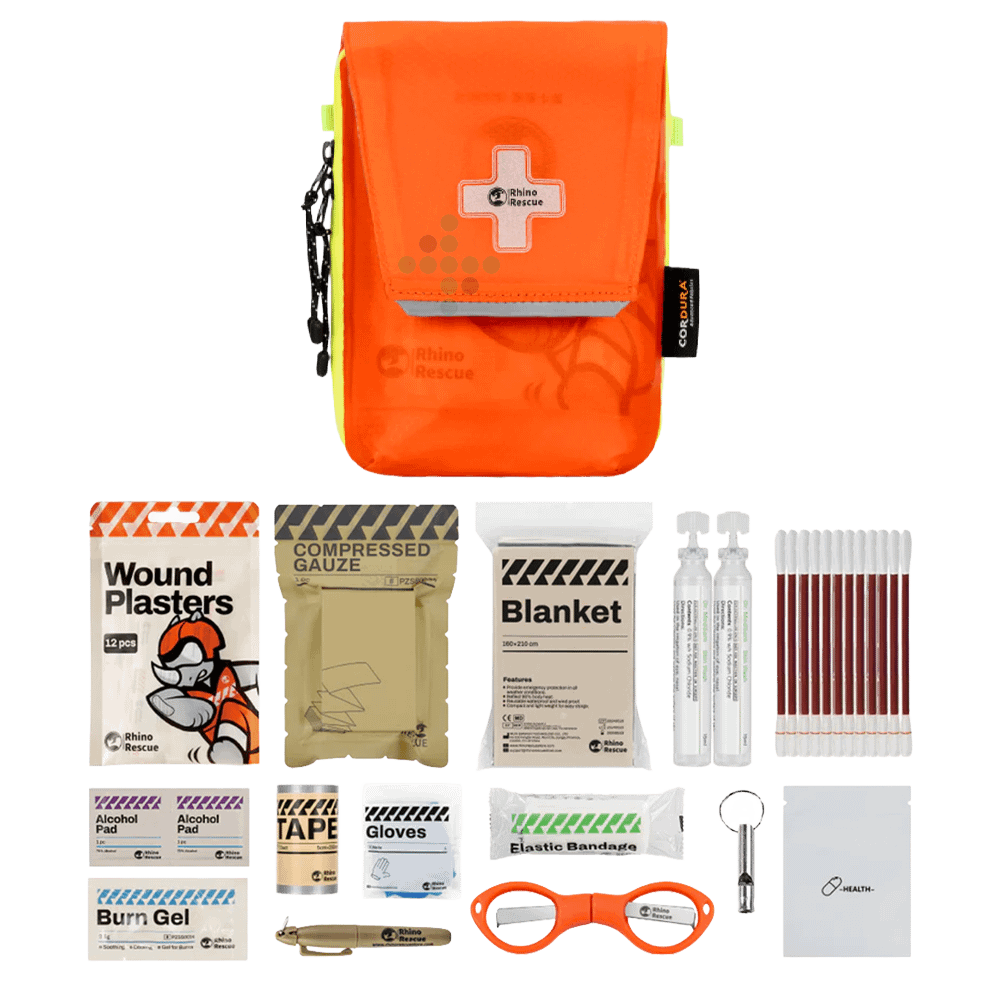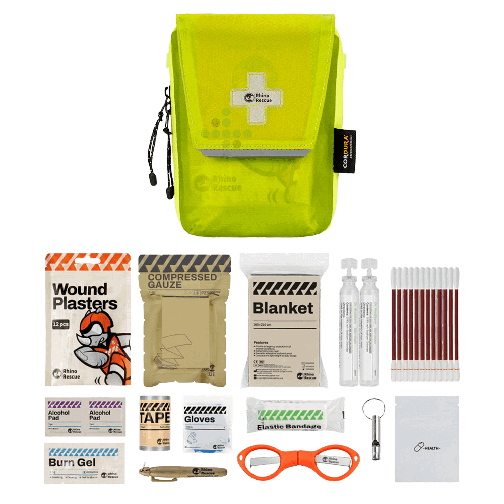 Mała podróżna apteczka – gdziekolwiek zaprowadzi Cię trasa. Apteczka RHINO RESCUE waży zaledwie 58 g, ale jej wielowarstwowy układ pozwala znaleźć i pobrać dowolny lek w ciągu sekundy – idealny do szybkiego leczenia otarć, krwawień, podrażnień oczu lub hipotermii, gdziekolwiek zaprowadzi Cię szlak.