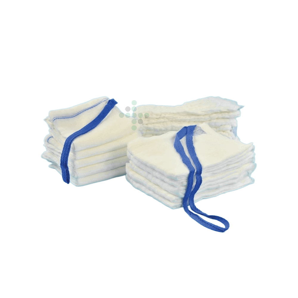 Obłożenie brzuszne z gazy z włóknem RTG 45×45 cm, 20 szt. Niesterylne obłożenie brzucha z gazy. Z włóknem z kontrastem rentgenowskim. Chirurgiczne obłożenie inwazyjne do okołooperacyjnego wchłaniania dużych ilości krwi i płynów ustrojowych z ran chirurgicznych - 17 włókien, 4 warstwy.