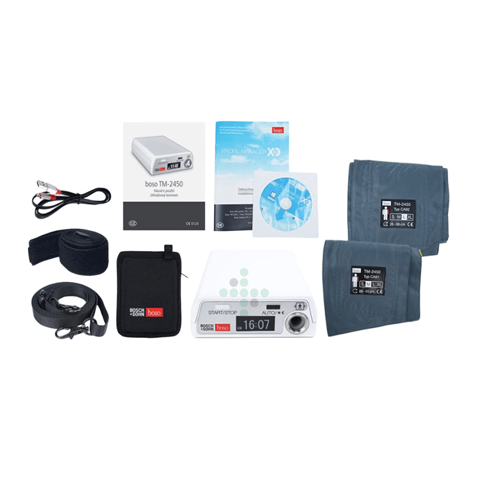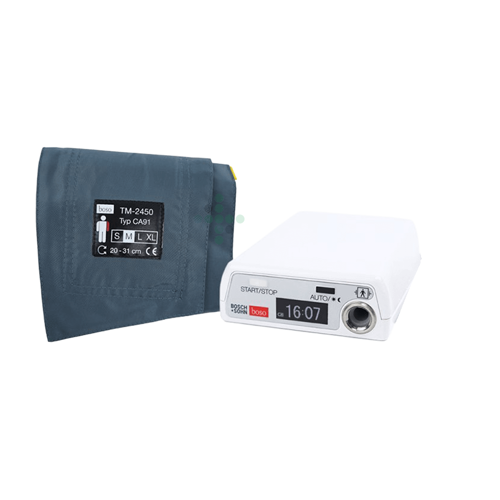 BOSO TM-2450 to 24-godzinny “holter” / ambulatoryjny monitor ciśnienia krwi. Jest przeznaczony do długoterminowego nieinwazyjnego monitorowania ciśnienia krwi (skurczowego i rozkurczowego) oraz pulsu w typowym okresie 24 godzin.
