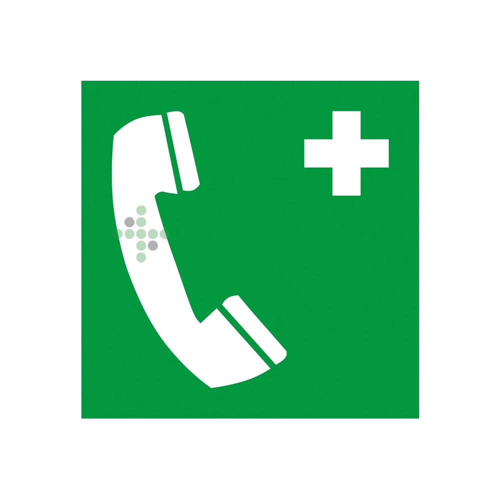 Informacyjny samoprzylepny symbol przedstawiający telefon alarmowy.
