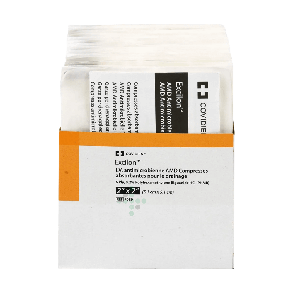 Excilon 5×5 cm - opatrunek przeciwbakteryjny. Chłonny, nietkany, antybakteryjny opatrunek z gazy o niskiej przyczepności impregnowany 0,2% PHMB. Bandaż do przykrycia w miejscu rurki tracheostomijnej.