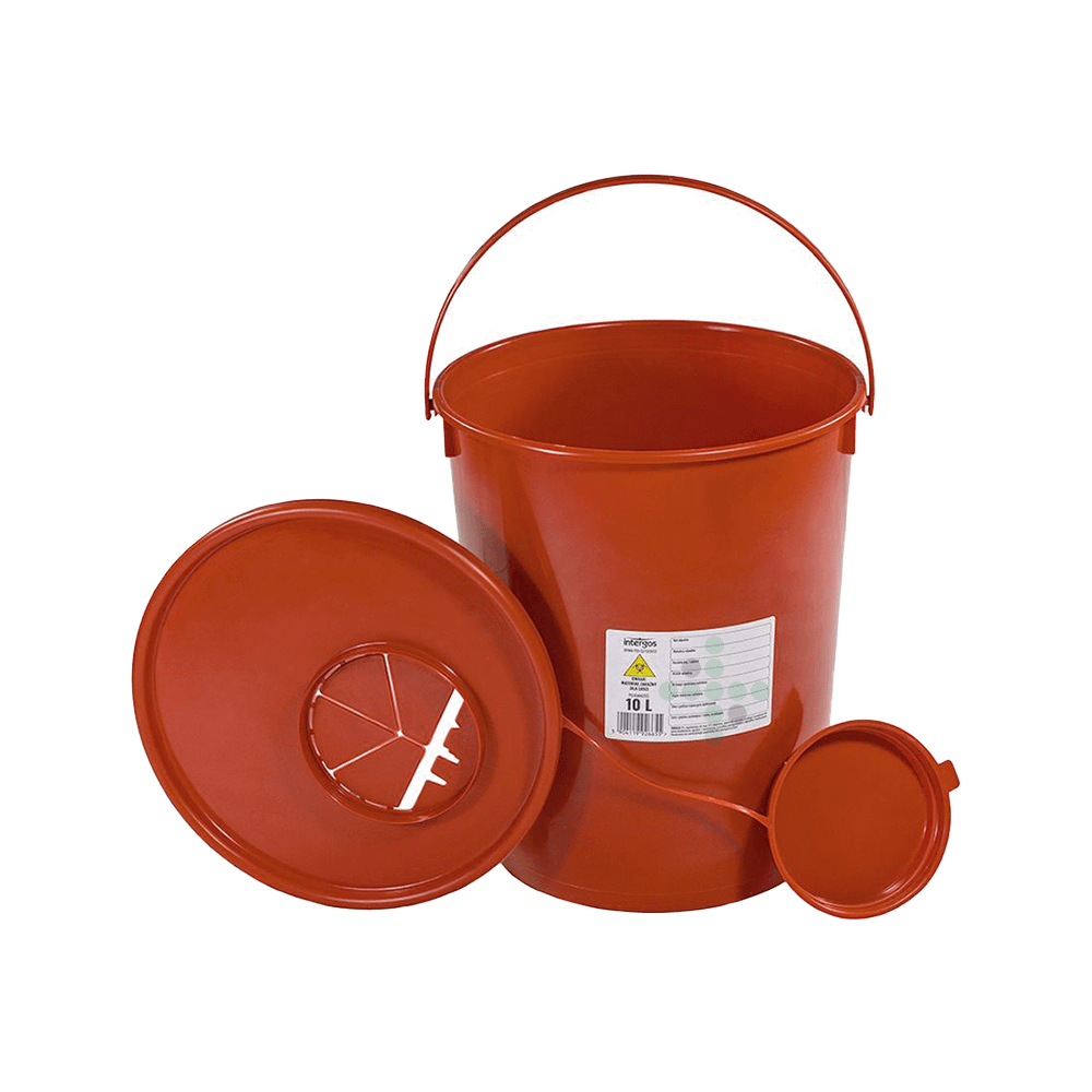 Czerwony pojemnik na odpady medyczne jest przeznaczony do zbierania materiałów opatrunkowych, różnych ostrzy (lancety, skalpele, żyletki), igieł i strzykawek po pobraniach lub zastrzykach itp.