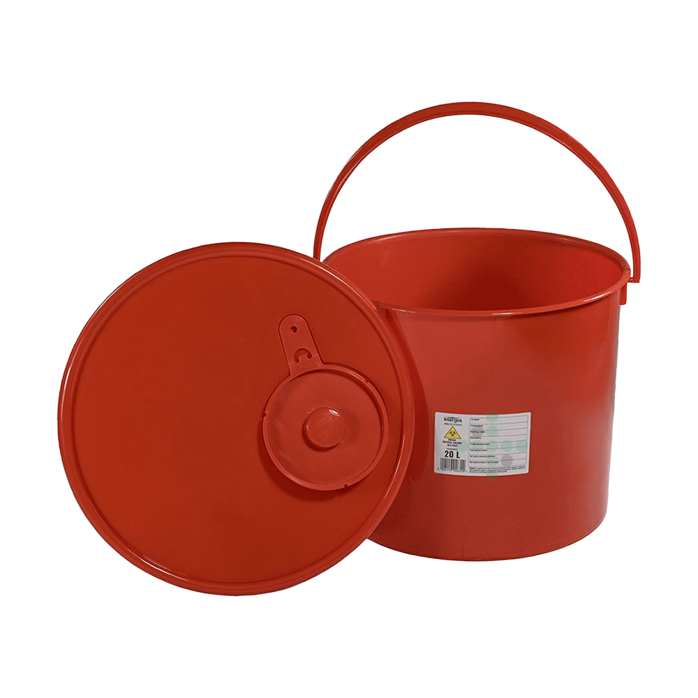 Czerwony pojemnik na odpady medyczne jest przeznaczony do zbierania materiałów opatrunkowych, różnych ostrzy (lancety, skalpele, żyletki), igieł i strzykawek po pobraniach lub zastrzykach itp.