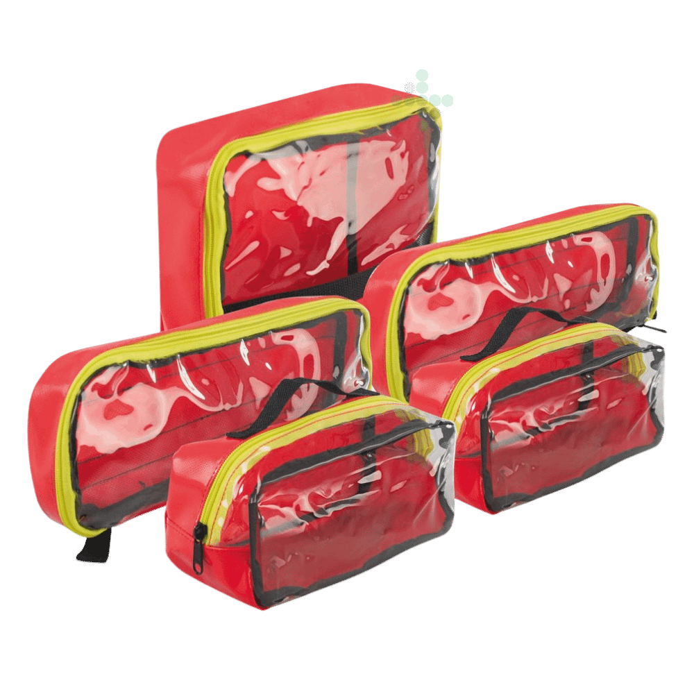 Duże przezroczyste okno na każdej kieszeni modułu zapewnia maksymalną możliwą przejrzystość podczas użytkowania. Po użyciu worki można umyć lub zdezynfekować. Torby modułowe są idealne do plecaka lub torby awaryjnej.