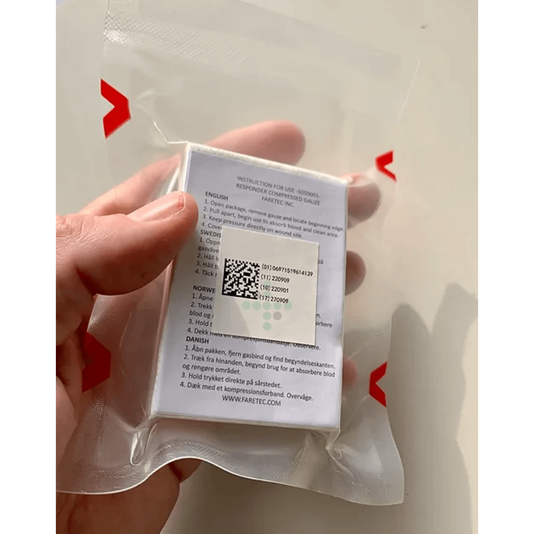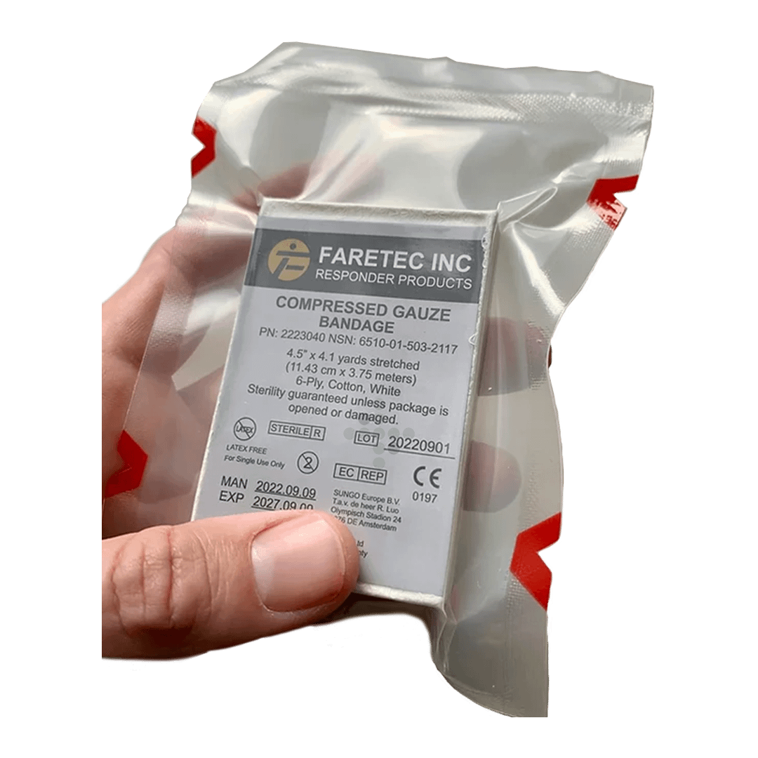 Opatrunek z gazy kompresyjnej FARTEC – Gaza kompresyjna składana to skompresowana gaza zwinięta w kształt litery Z, idealna do opatrywania ran i owijania ran.