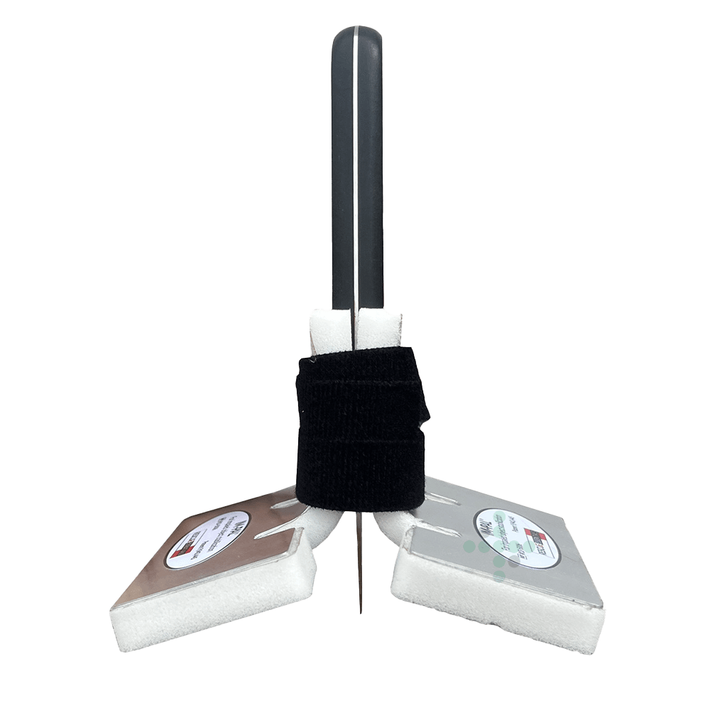 - Dopasuj połówki IM-PAL do boków wbitego przedmiotu, tak aby dłuższe części stykały się z przedmiotem i ciałem pacjenta.