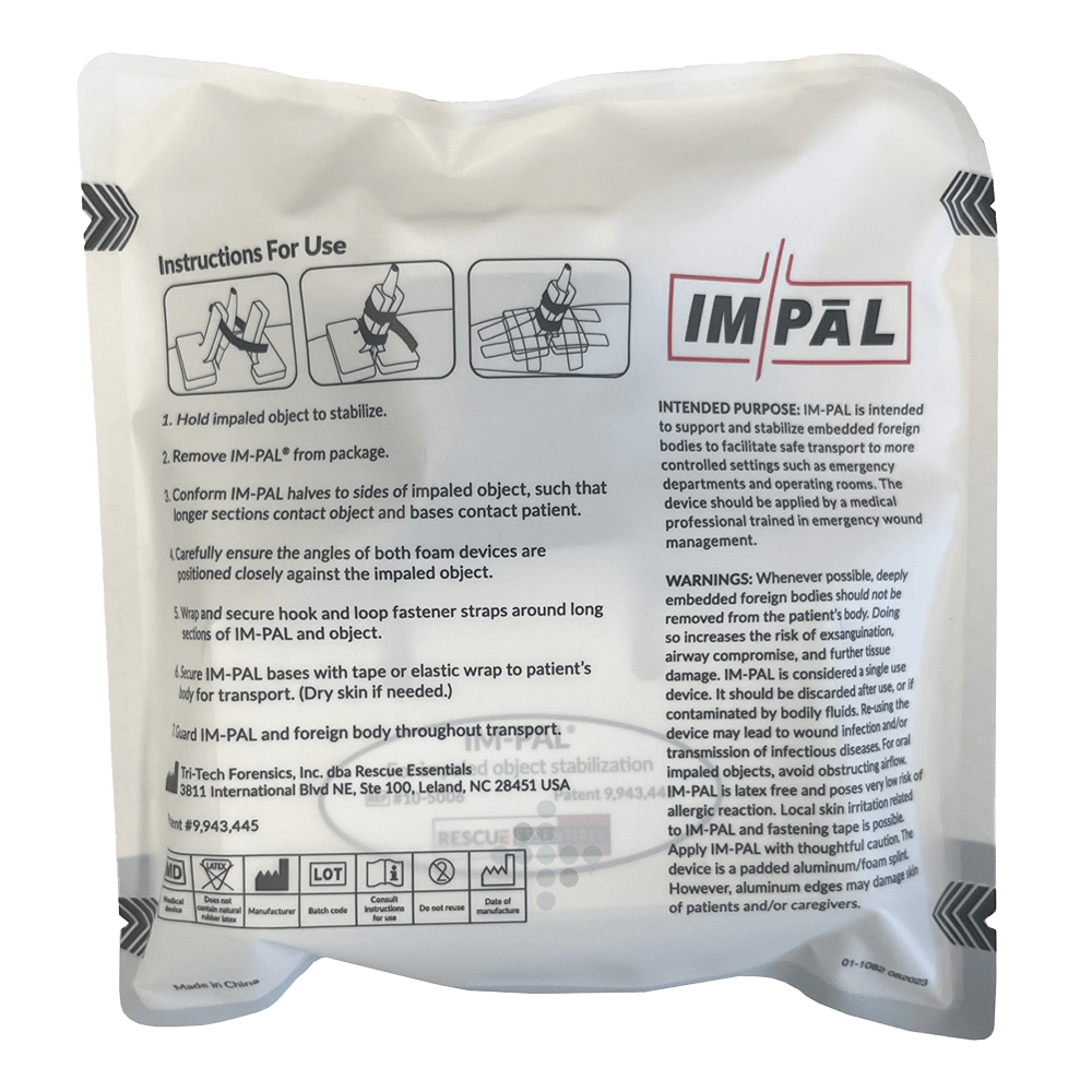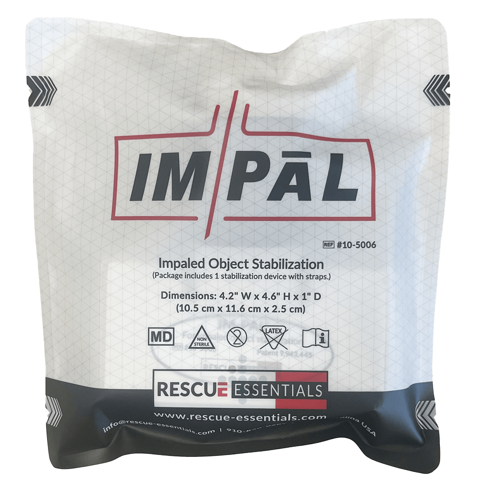 Rescue Essentials IM-PAL® to system stabilizacji przedmiotów wbitych w ciało pacjenta przeznaczony do szybkiej stabilizacji wbitych przedmiotów w celu optymalizacji rany pacjenta.