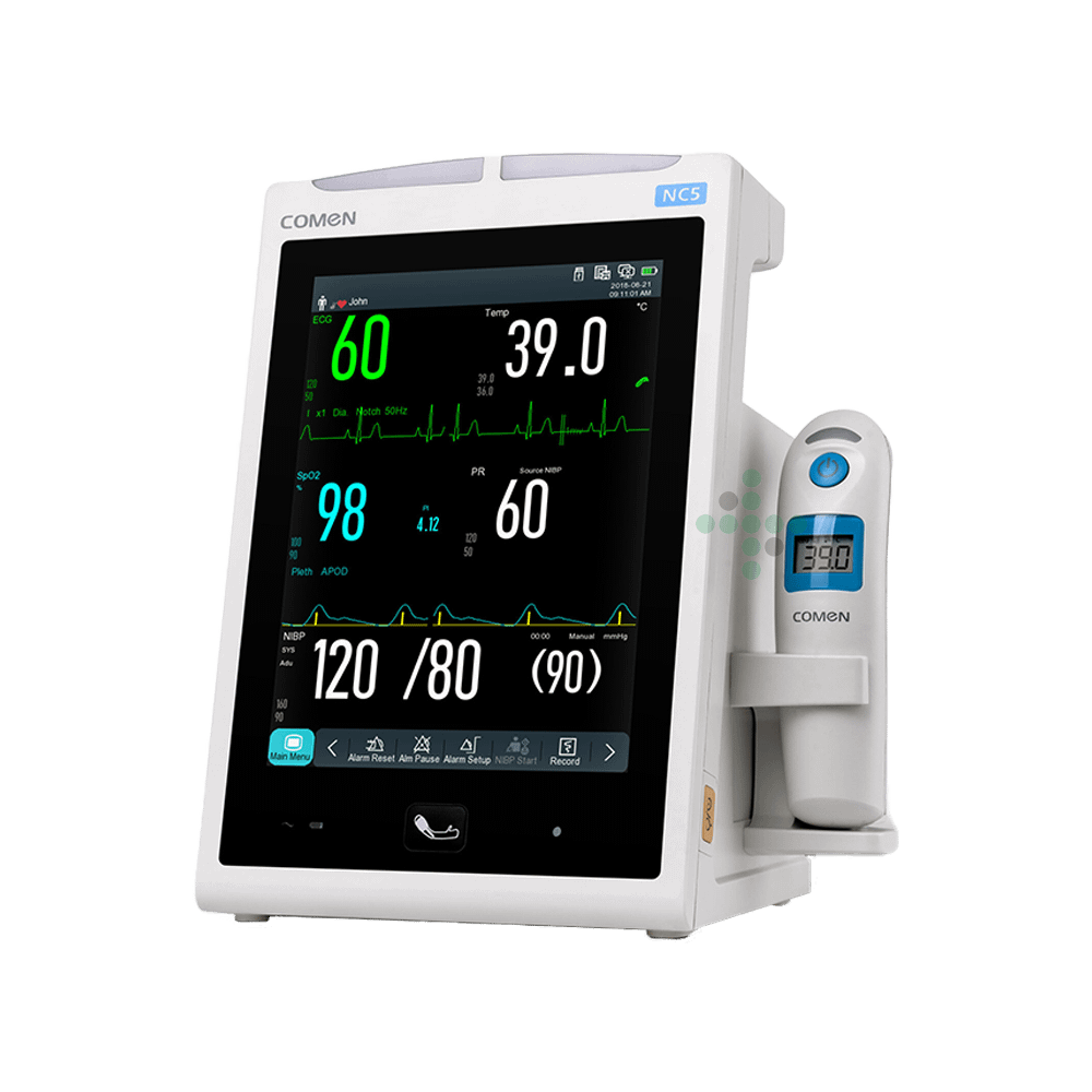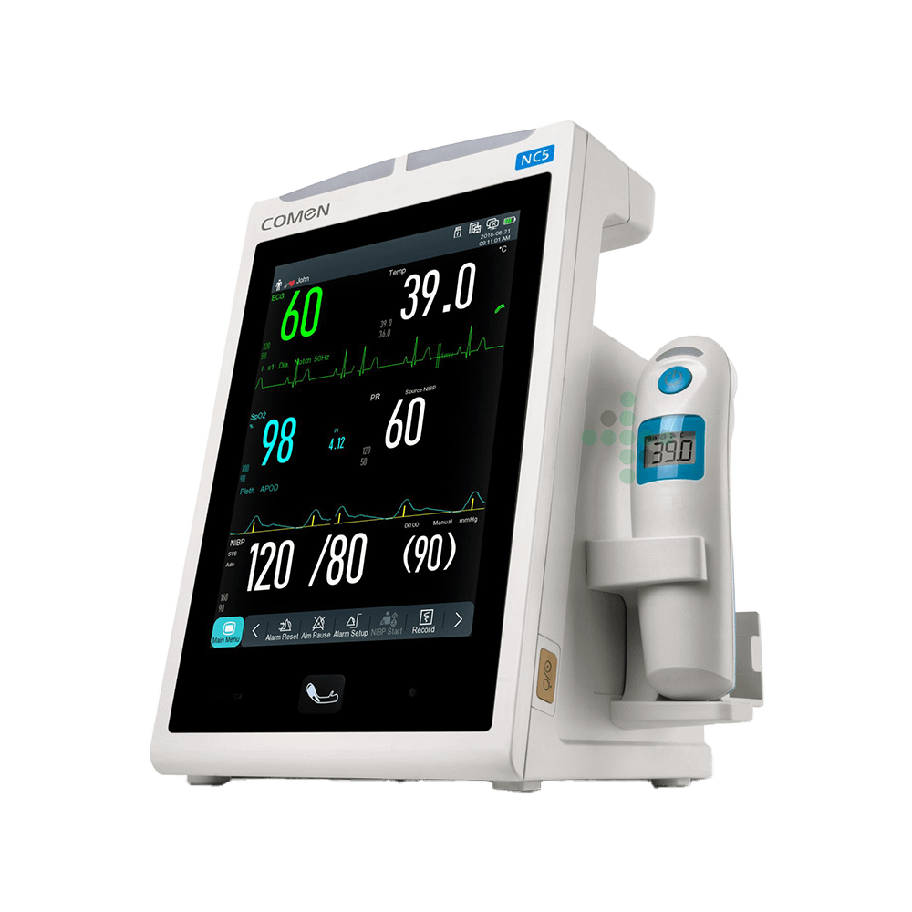 Zaawansowany monitor parametrów życiowych COMEN NC5 został zaprojektowany do monitorowania EKG, NIBP, SpO2 i temperatury, dzięki czemu idealnie nadaje się do użytku w klinikach lub na pogotowiu ratunkowym. W zależności od wymagań, system monitorowania umożliwia pomiary kontrolne w celu szybkiej oceny parametrów fizjologicznych lub ciągłego monitorowania.