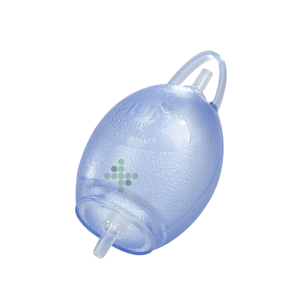 Nadmuchiwanie maski resuscytacyjnej dzięki niewielkiej, praktycznej pomocy do nadmuchiwania i opróżniania masek resuscytacyjnych z haczykiem do mocowania jako brelok do kluczy.
