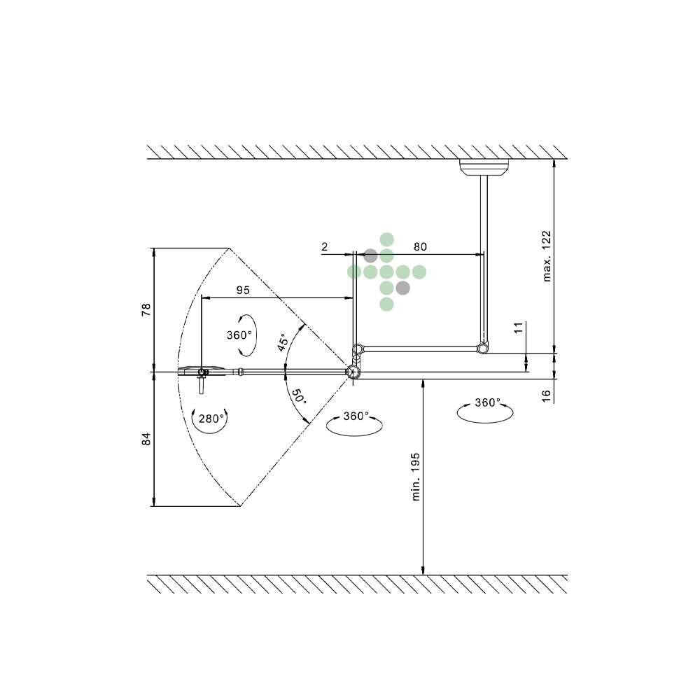 - Wersja: Mocowanie sufitowe, możliwość skrócenia rury sufitowej o dł. 25-120 cm