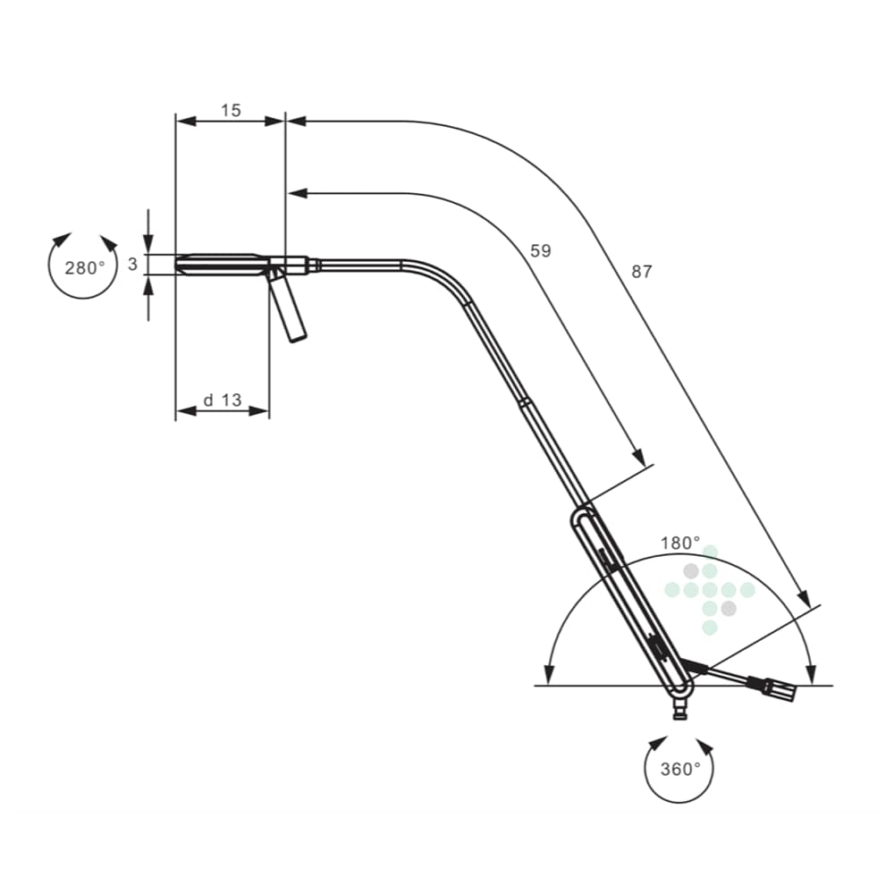 - Wystarczająca ruchomość: obracana o 280° głowica oświetleniowa i duży zasięg ramienia.