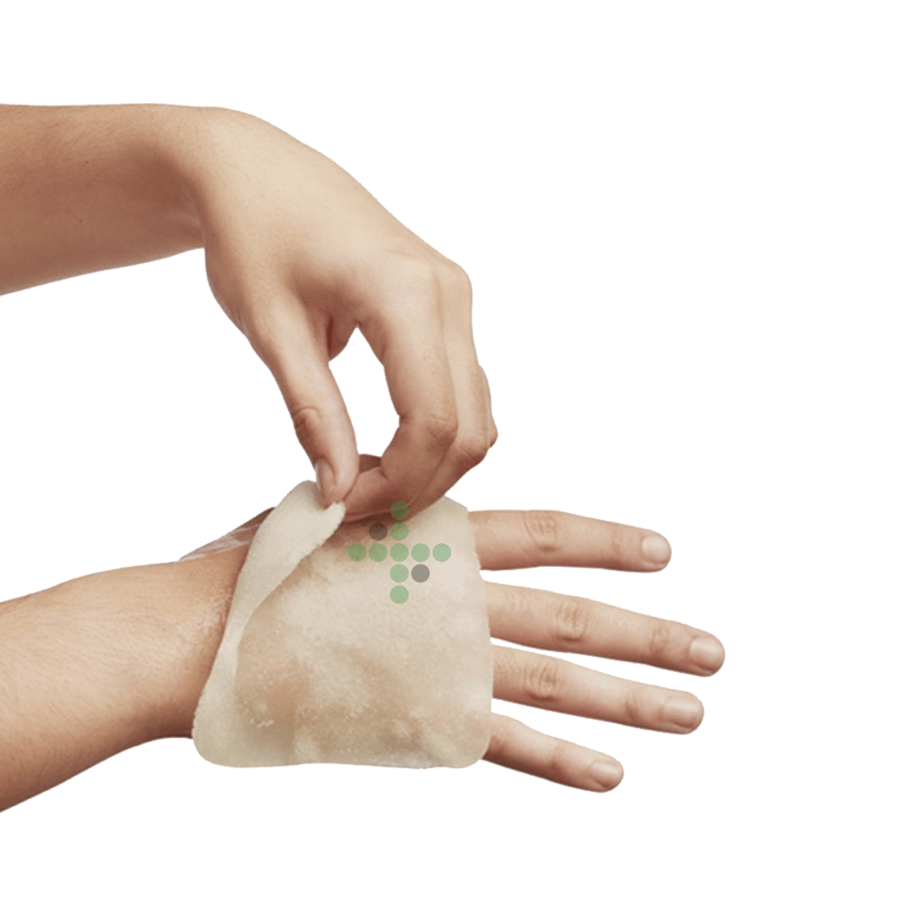 Burnshield 10x10cm to osłona na oparzenia jako środek pierwszej pomocy w przypadku oparzeń termicznych w kontakcie z ogniem, gorącą cieczą, gorącym metalem, prądem elektrycznym, parą lub wybuchem.