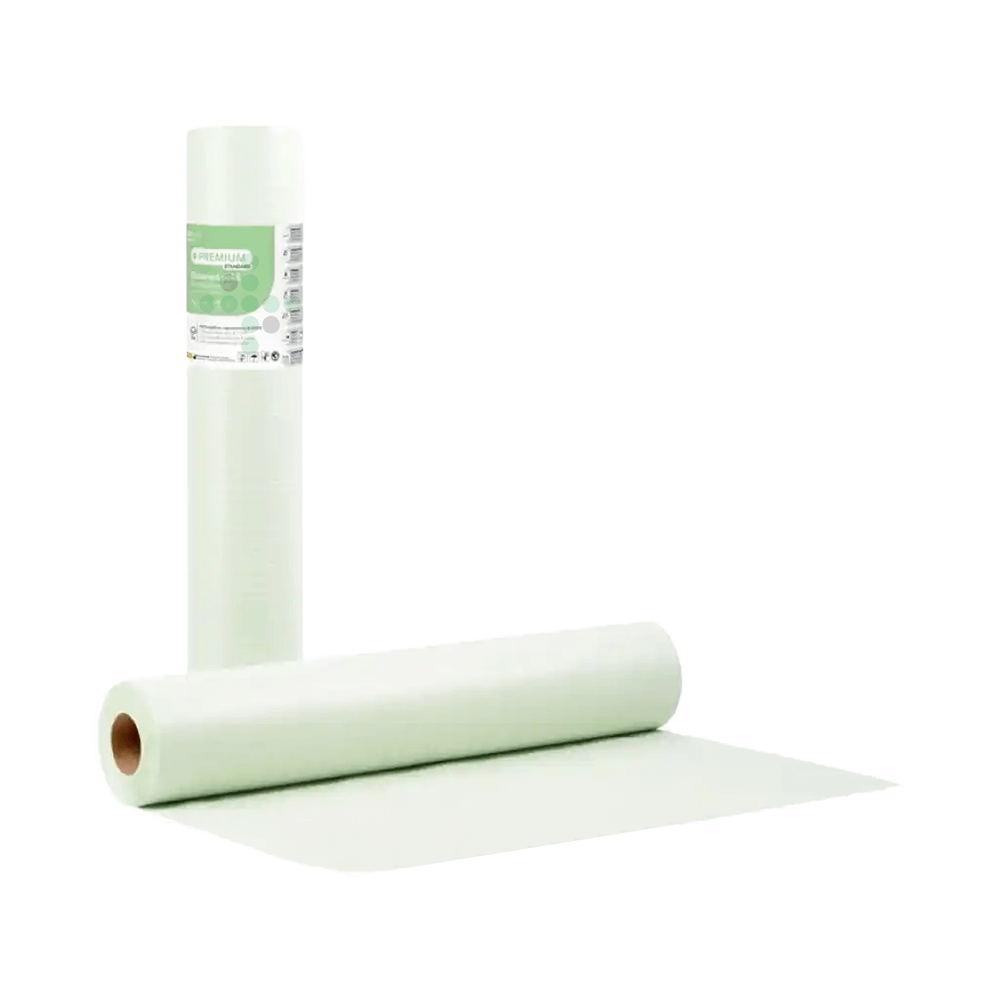 Papier egzaminacyjny PREMIUM 50 cm x 50 m + folia PE. Papier na stół egzaminacyjny z trwałym pokryciem, zaprojektowanym w celu ochrony łóżek przed bakteriami i brudem.