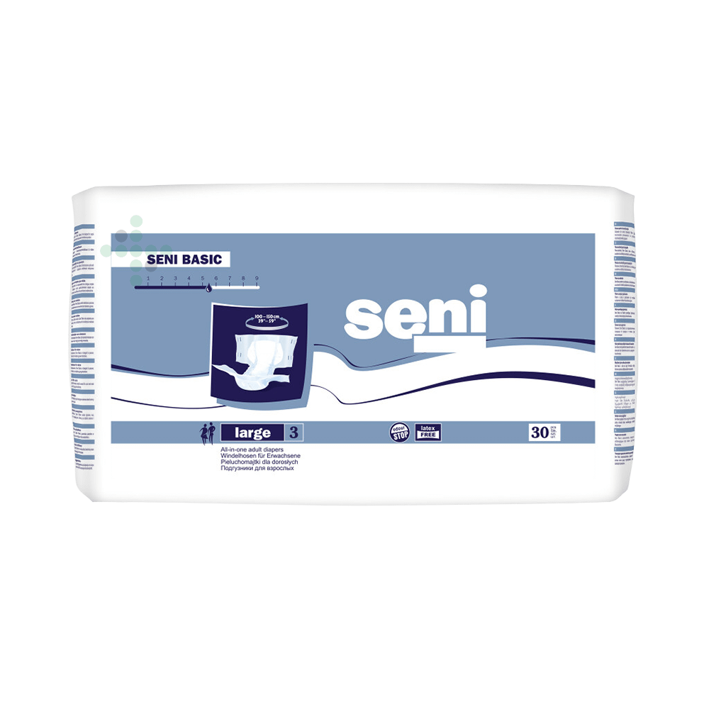 Pieluchomajtki samoprzylepne Seni BASIC, 30 szt. Pieluchomajtki samoprzylepne dla osób ze średnim nietrzymaniem moczu.