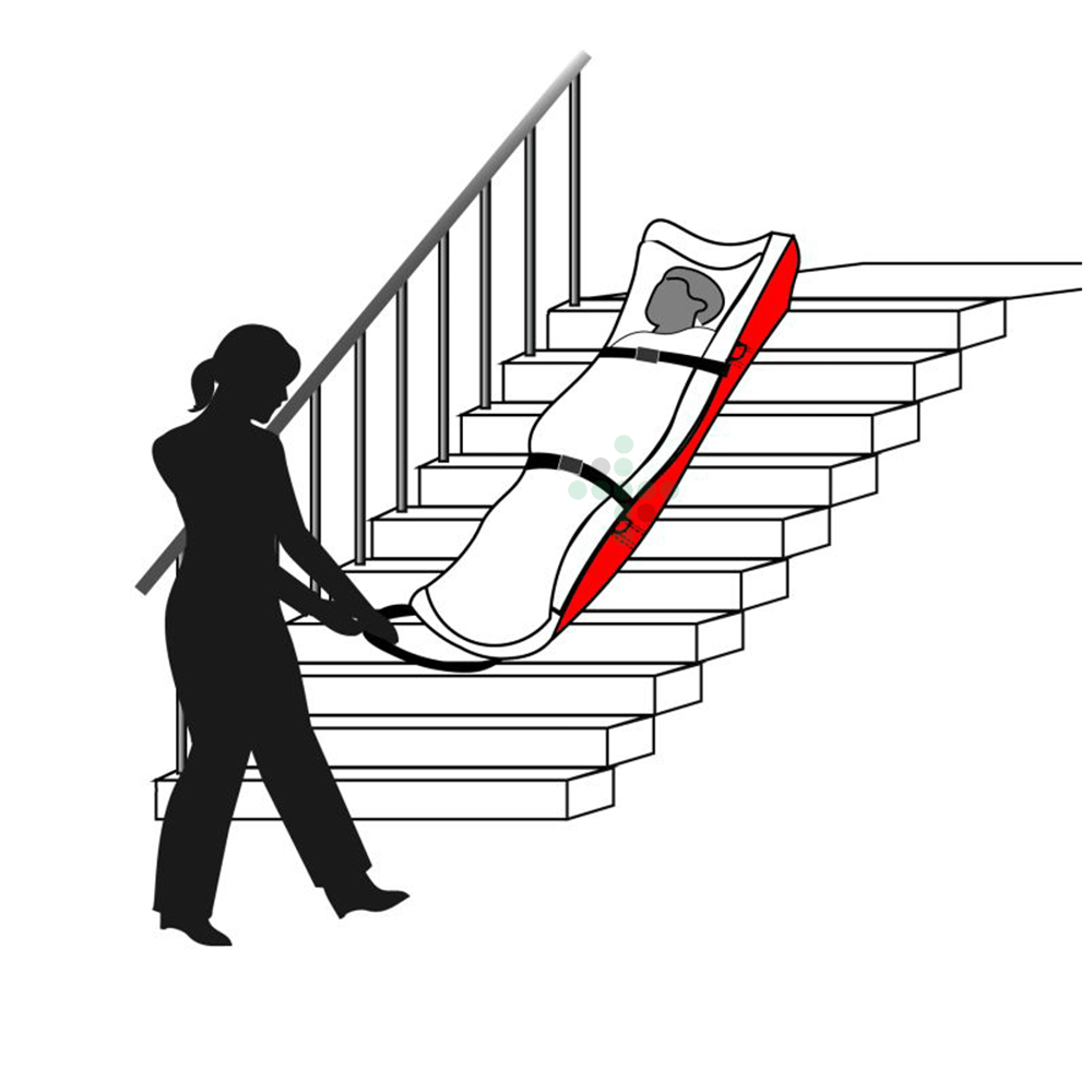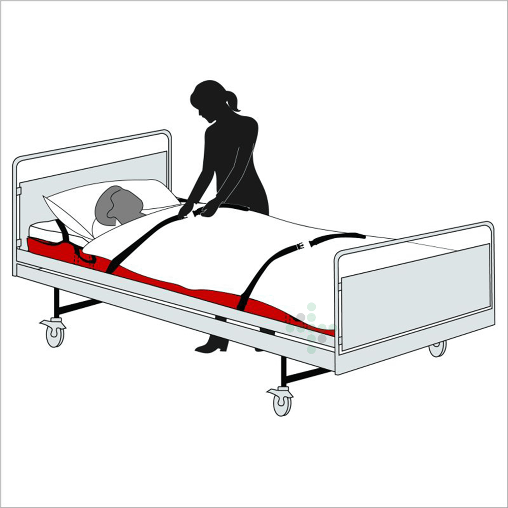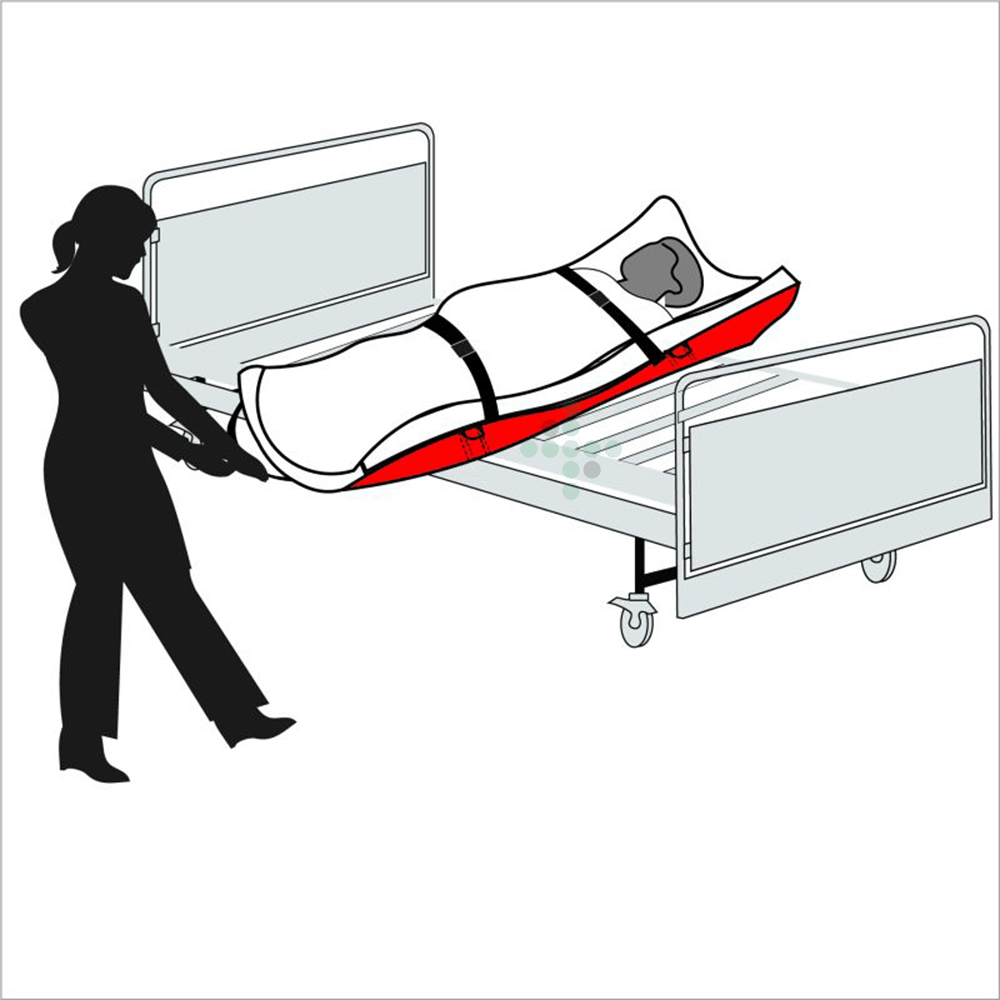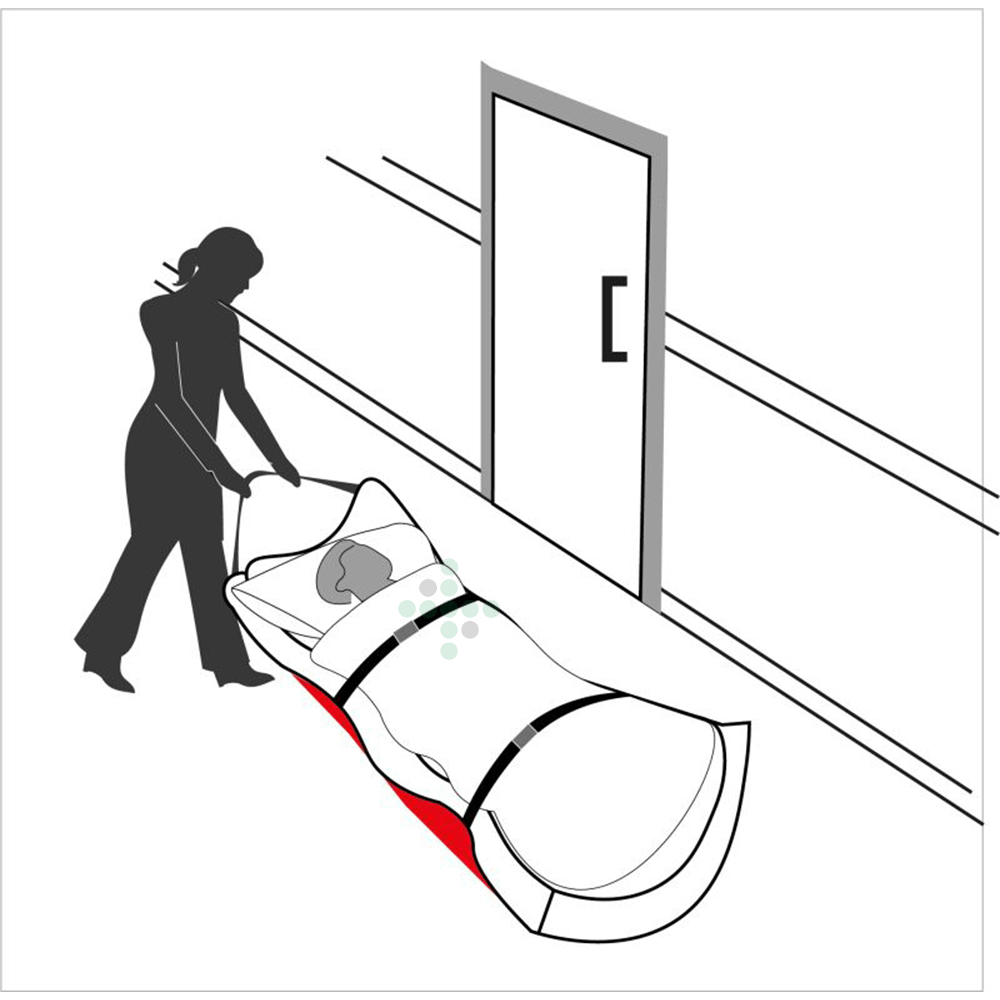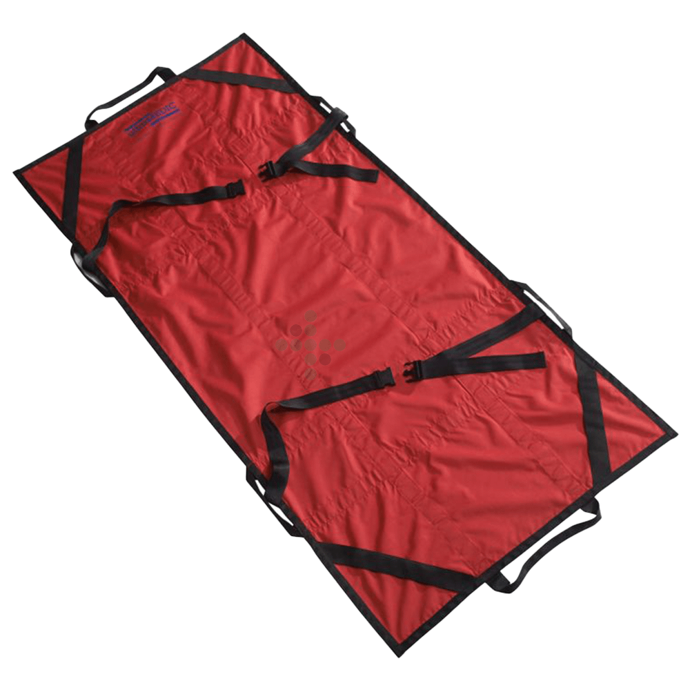 Prześcieradło ewakuacyjne UltraMEDIC z 6 uchwytami do przenoszenia i 4 pętlami na materac do łatwego mocowania pod materacem.
