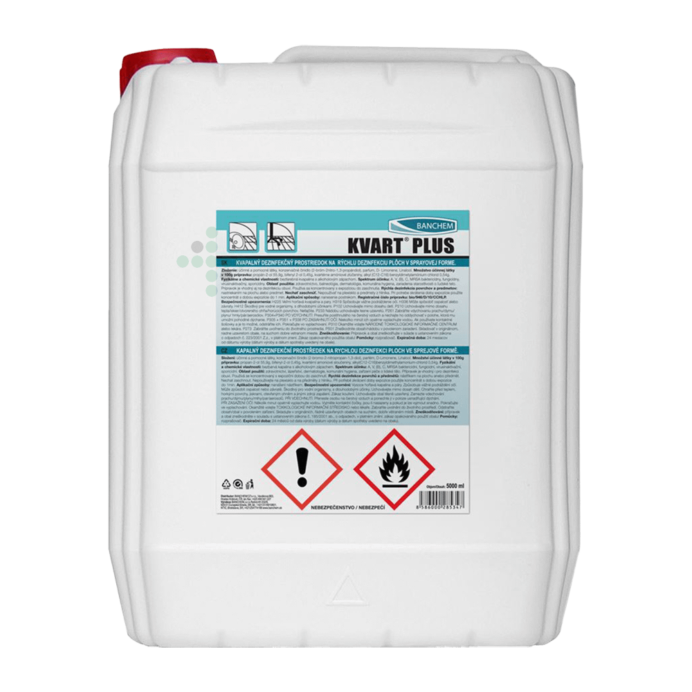 KVART PLUS środek do dezynfekcji powierzchni 5 L. Płynny środek do dezynfekcji wyrobów medycznych wykonanych z metalu, gumy, plastiku i małych powierzchni.