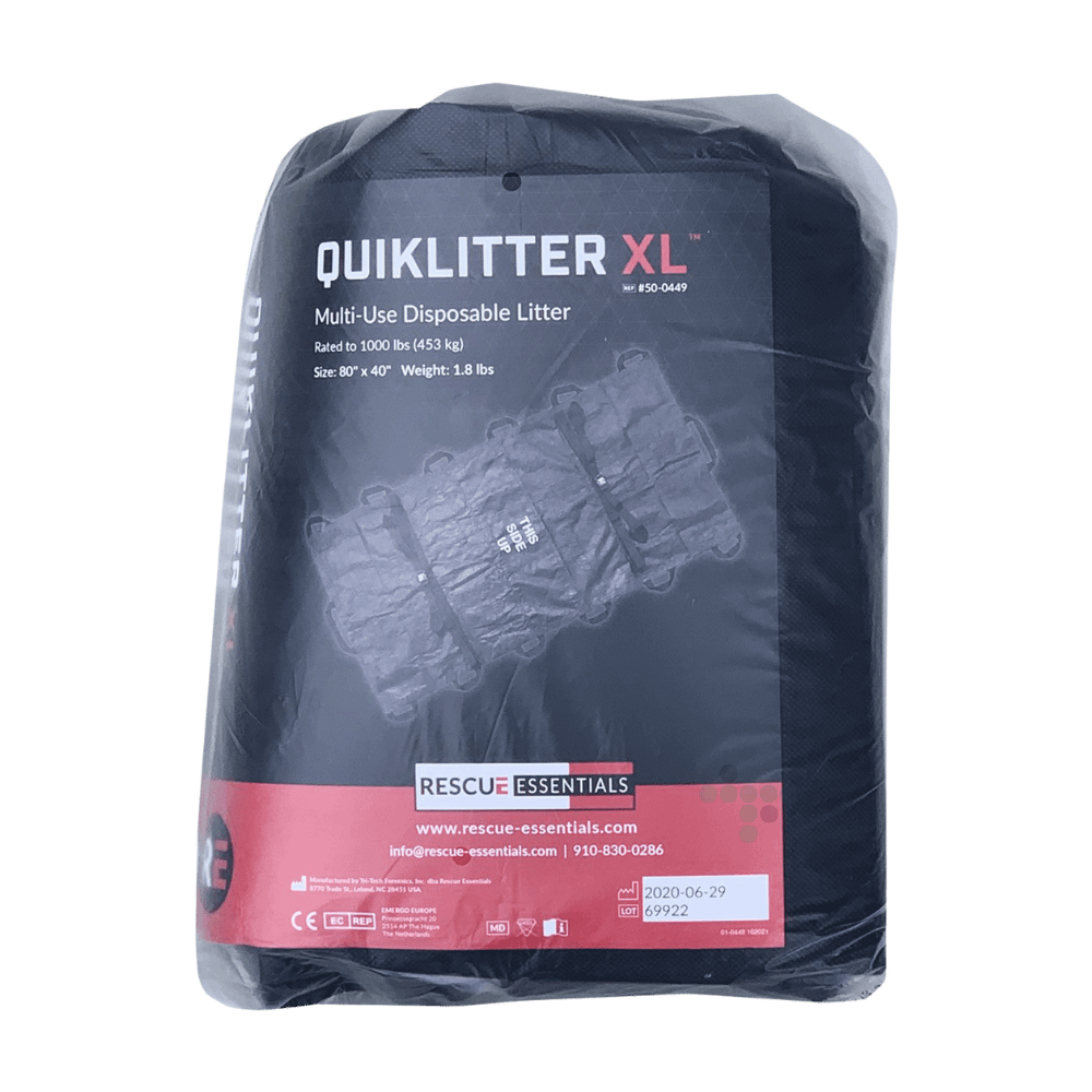 Może być używany do codziennego użytku jako miękkie nosze, jako pomocniczy podnośnik z deską lub jako awaryjny transport pacjentów MCI. Plandeka transportowa QuikLitter XL jest wykonana z wytrzymałej taśmy polipropylenowej i jest pokryta lekkim, nietkanym, odpornym na płyny, laminowanym podkładem polietylenowym zapewniającym trwałość.