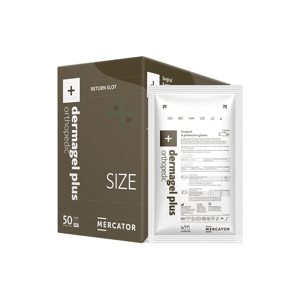 Rękawice ortopedyczne DERMAGEL LATEX, sterylne. Pakowane pojedynczo.