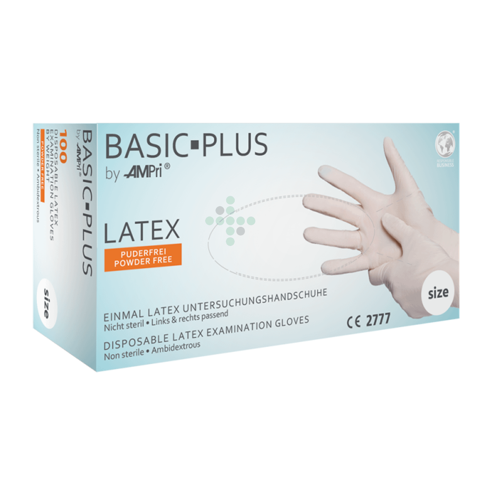 Rękawice lateksowe bezpudrowe BASIC. Jednorazowe rękawice lateksowe do badań i ochrony.