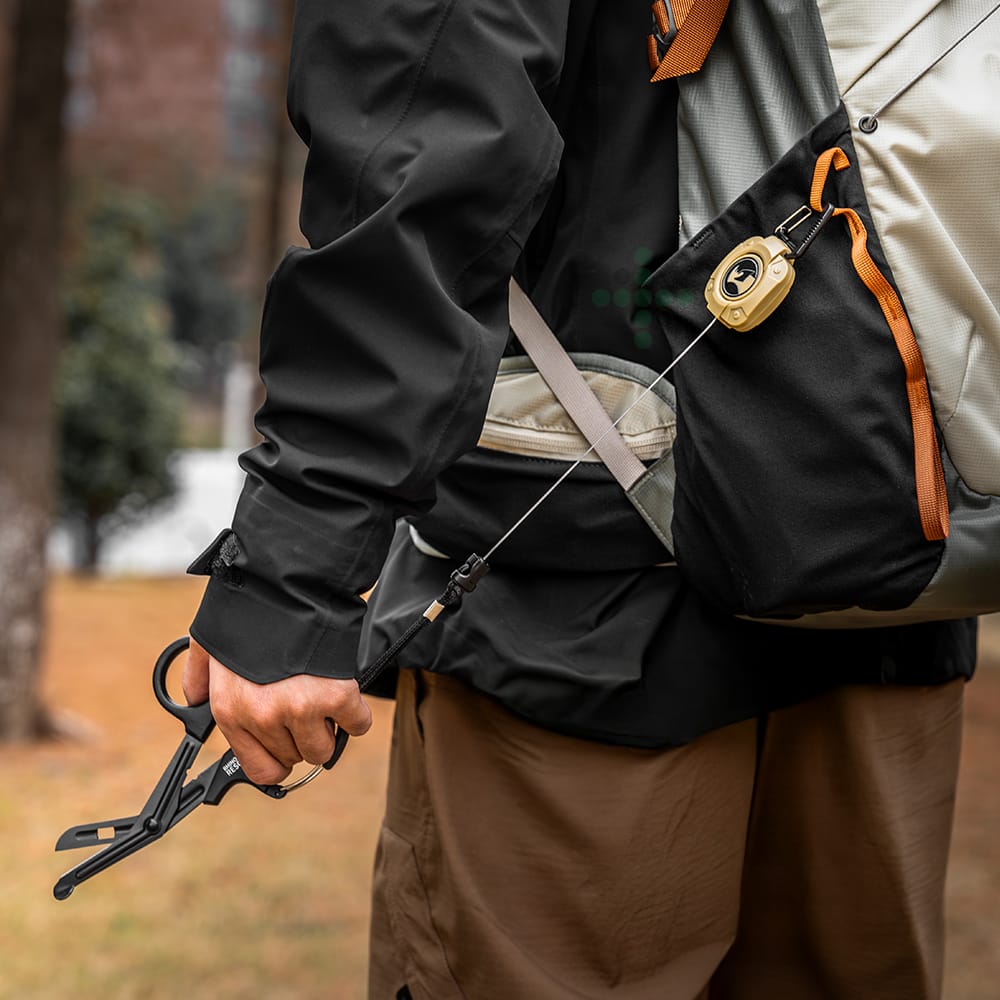 Rhino Rescue Self Retracting Scissor Leash - wytrzymały samozwijający się system przeznaczony do mocowania nożyczek lub innych narzędzi. Dzięki swojej konstrukcji pozwala na szybkie i bezpieczne przymocowanie do sprzętu, zapewniając natychmiastowy dostęp do narzędzia w razie potrzeby. Zapobiega zgubieniu nożyczek, jednocześnie zapewniając stałą kontrolę nad ich lokalizacją i pozwalając na natychmiastowe użycie bez zbędnej zwłoki.