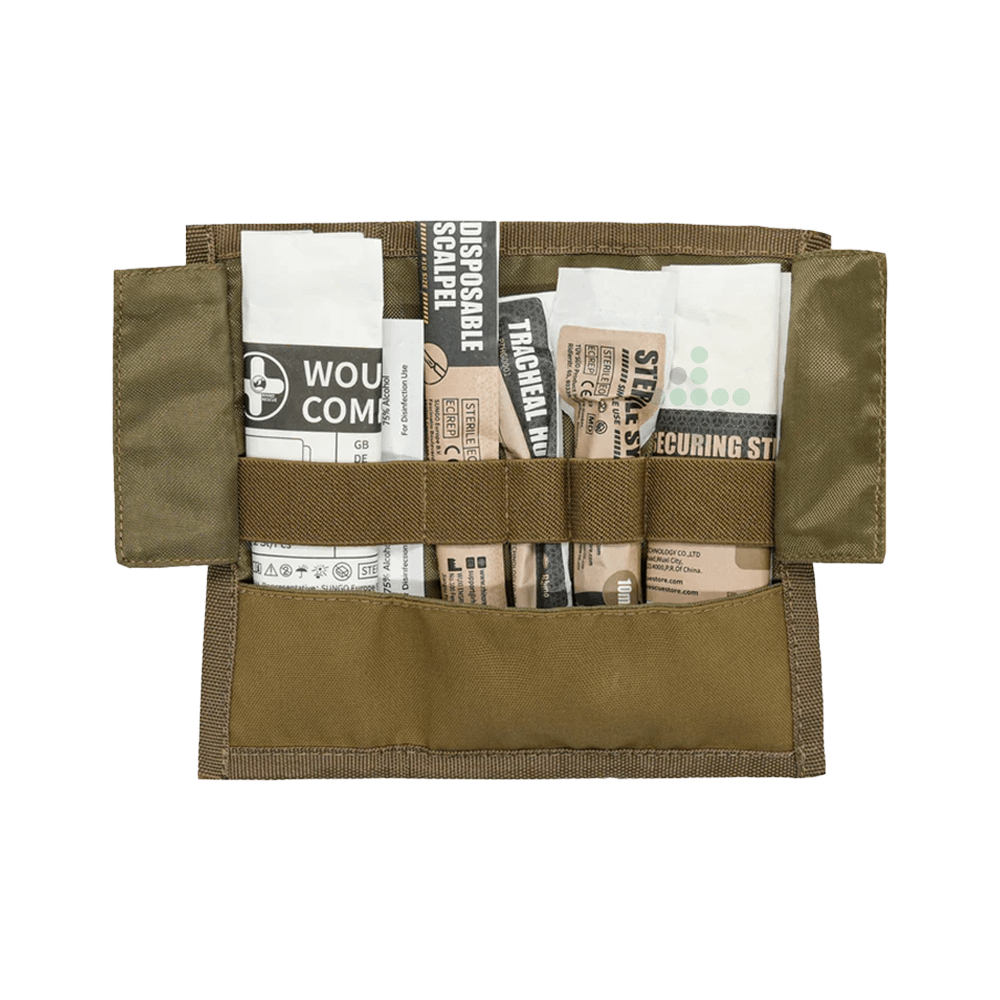 - Zoptymalizowany do warunków polowych - zestaw do cricothyroidotomii jest idealny do warunków pola walki, zapewniając pewność wykonania zabiegu bez względu na otoczenie.