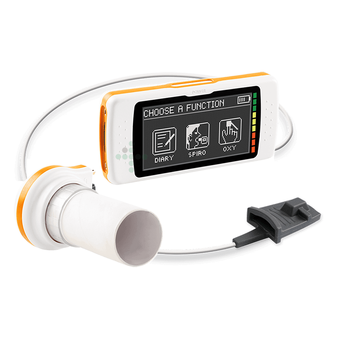 Spirodoc to wielofunkcyjny przenośny spirometr z ekranem dotykowym i opcjonalną oksymetrią 3D.
