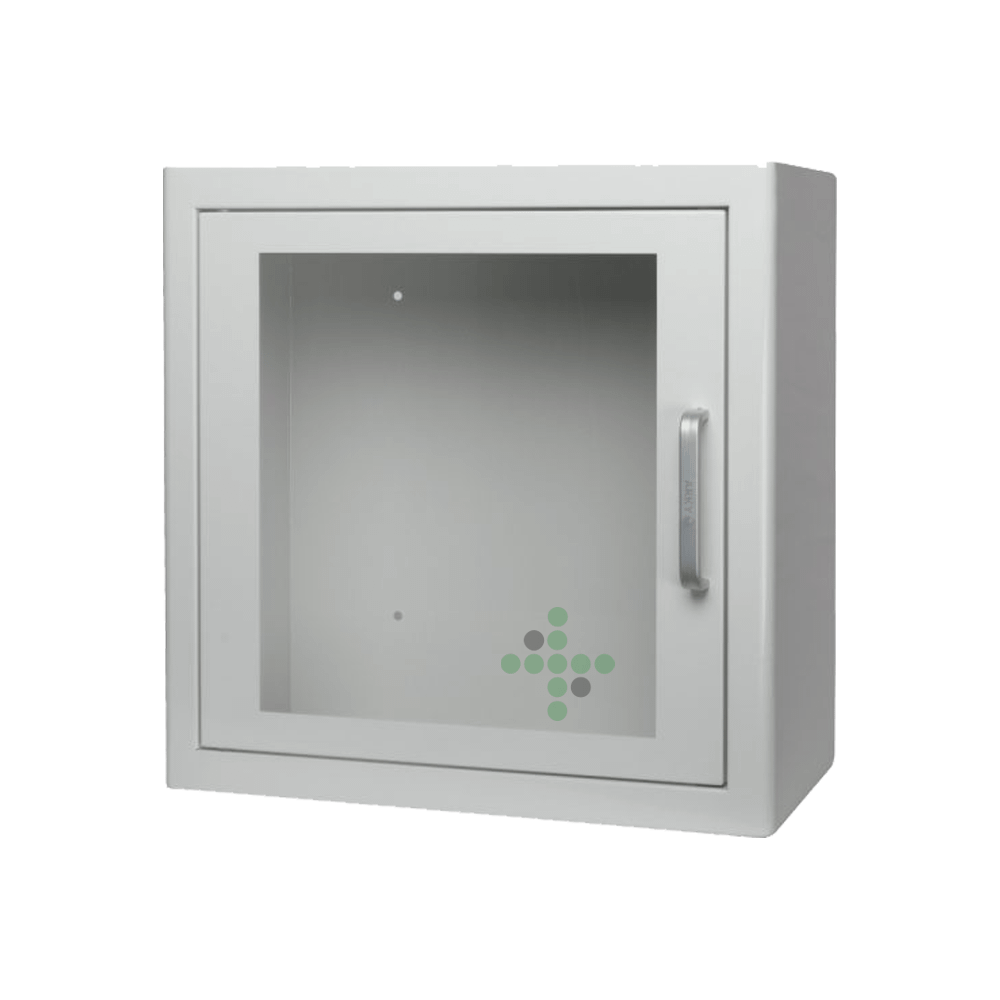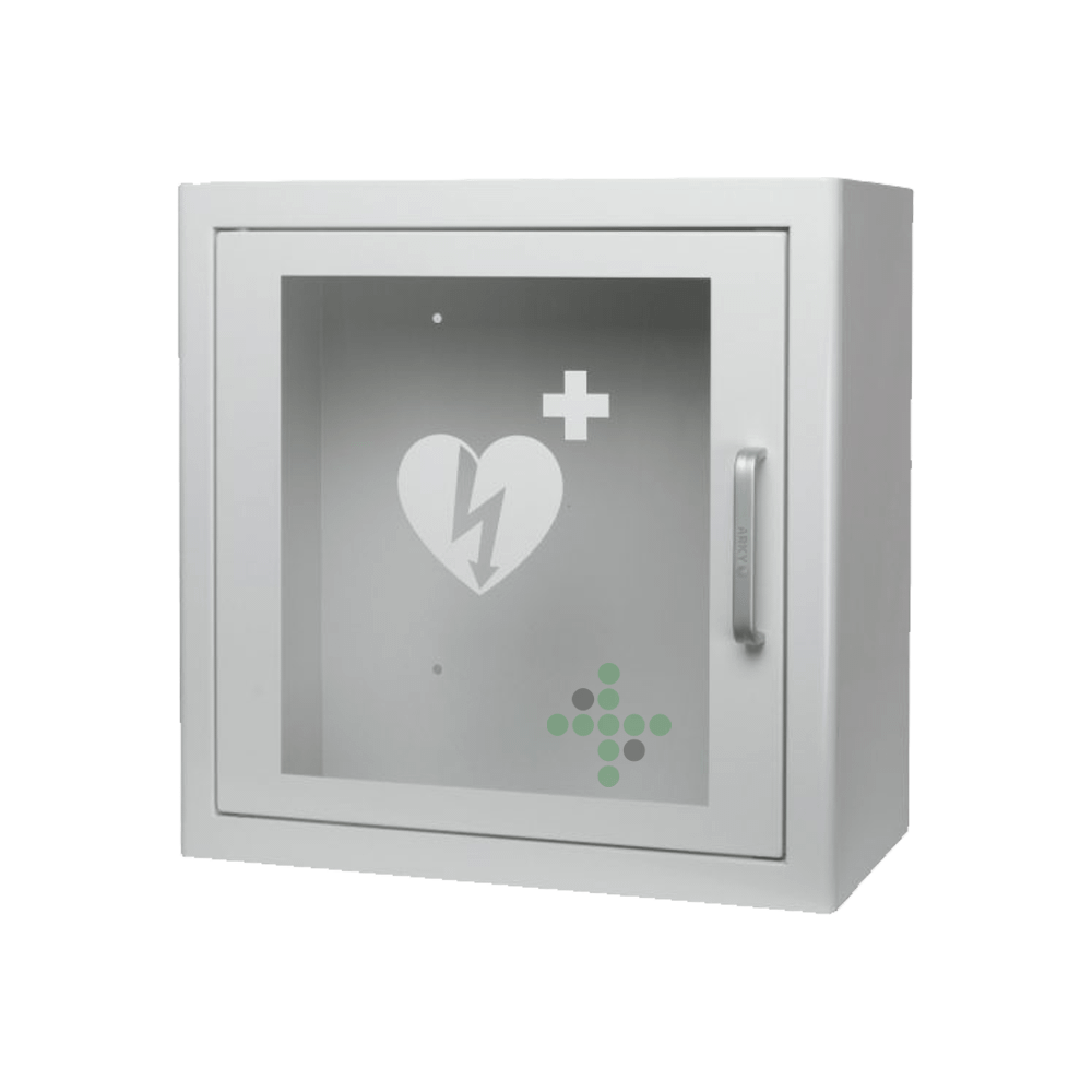 Przezroczysta przednia strona wykonana jest z pleksiglasu i zapewnia dobrą widoczność defibrylatora AED przez cały czas. Zasilany bateryjnie alarm włącza się po otwarciu drzwi, ostrzegając o sytuacji awaryjnej.