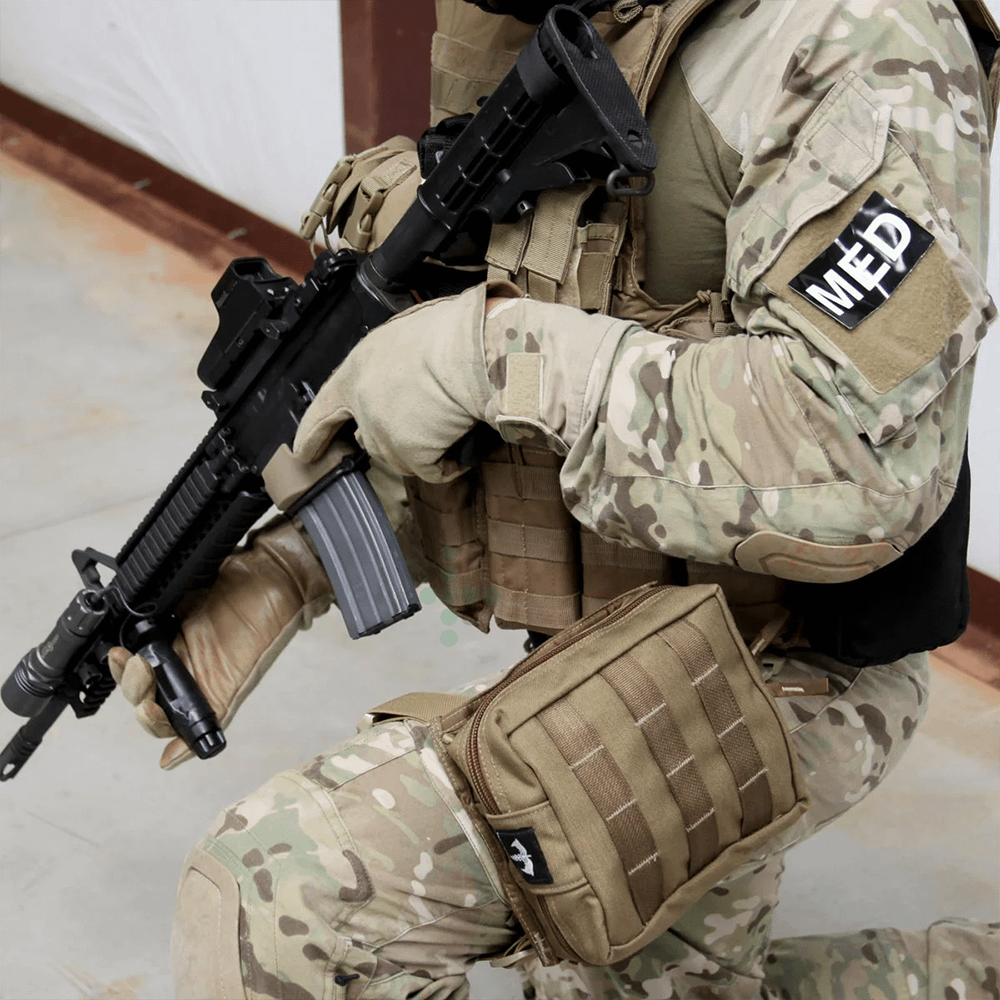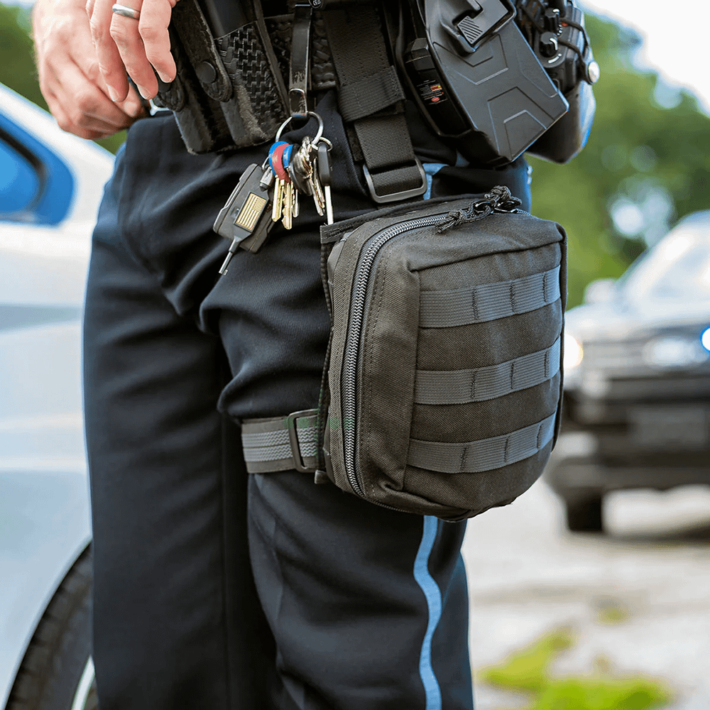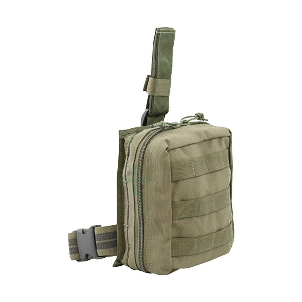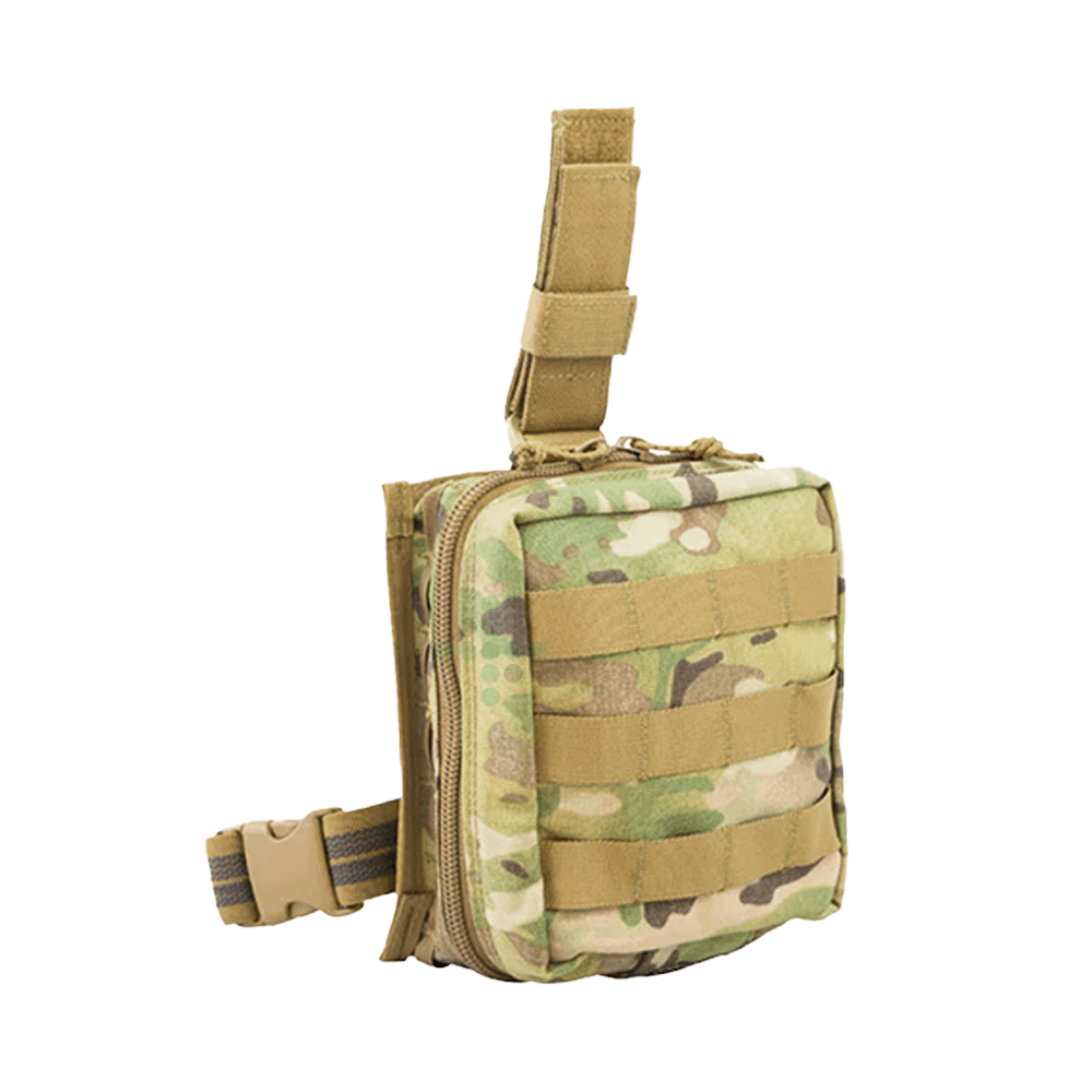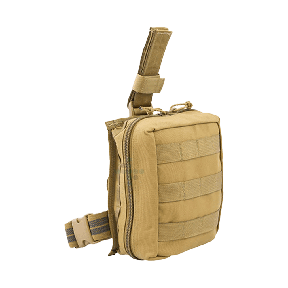 Saszetka może być noszona na nodze lub przymocowana do kamizelki typu MOLLE, w zależności od preferencji użytkownika.