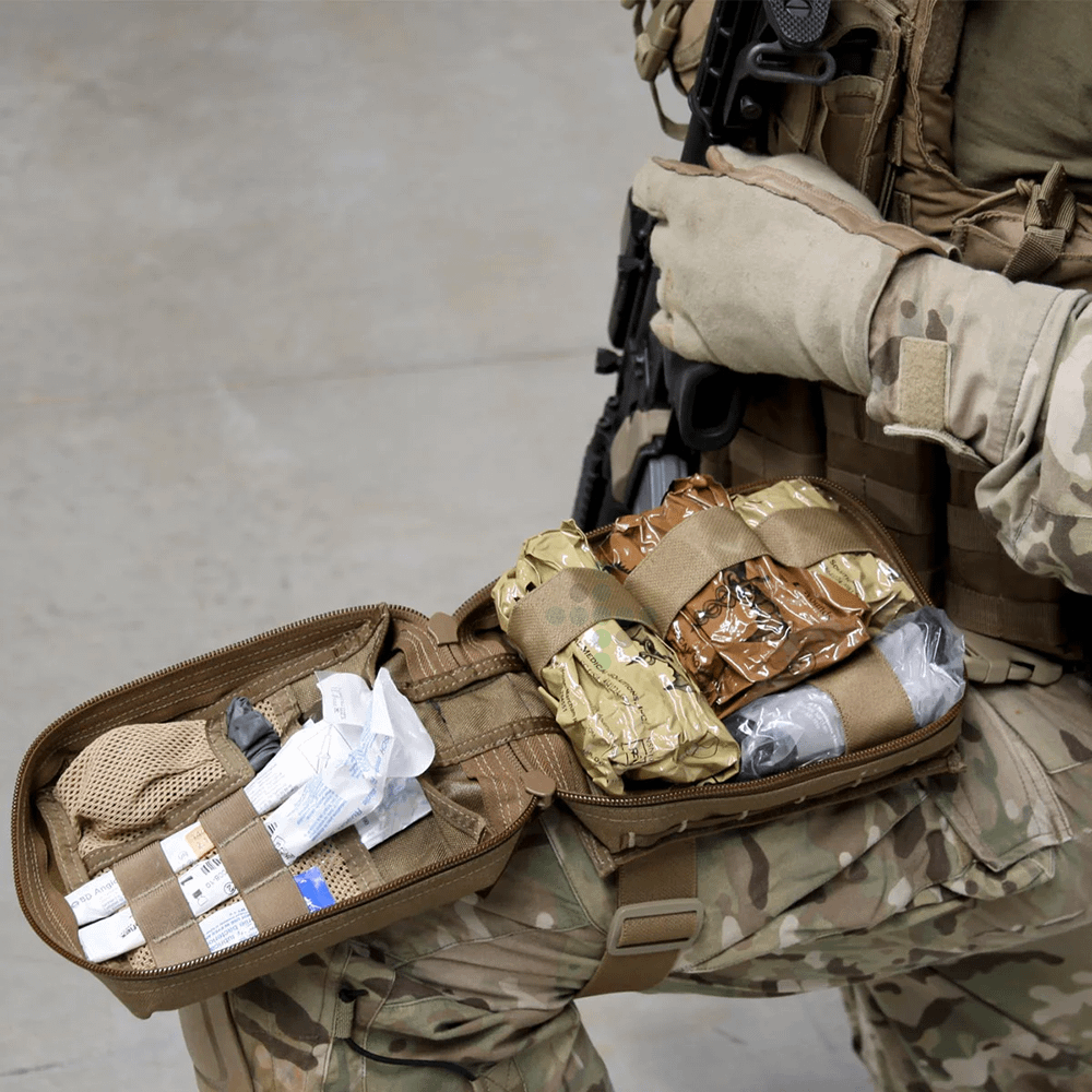 TacMed™ IFAK Tactical Leg Kit to kompaktowa, wydajna apteczka pierwszej pomocy z przejrzystym wnętrzem i zamkiem błyskawicznym.