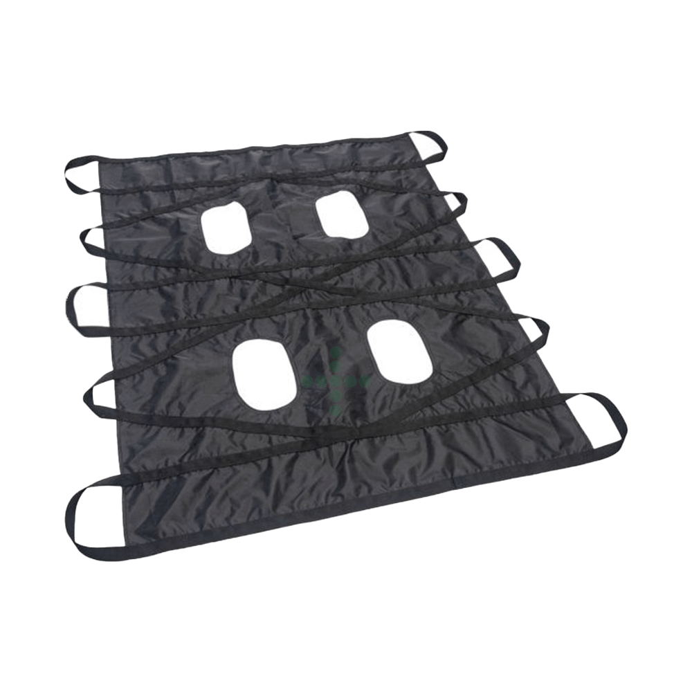 Prześcieradło ma wycięcia na nogi dla bezpiecznego pozycjonowania zwierzęcia. Sześć dużych i cztery małe uchwyty umożliwiają przenoszenie zwierzęcia przez jedną do czterech osób.