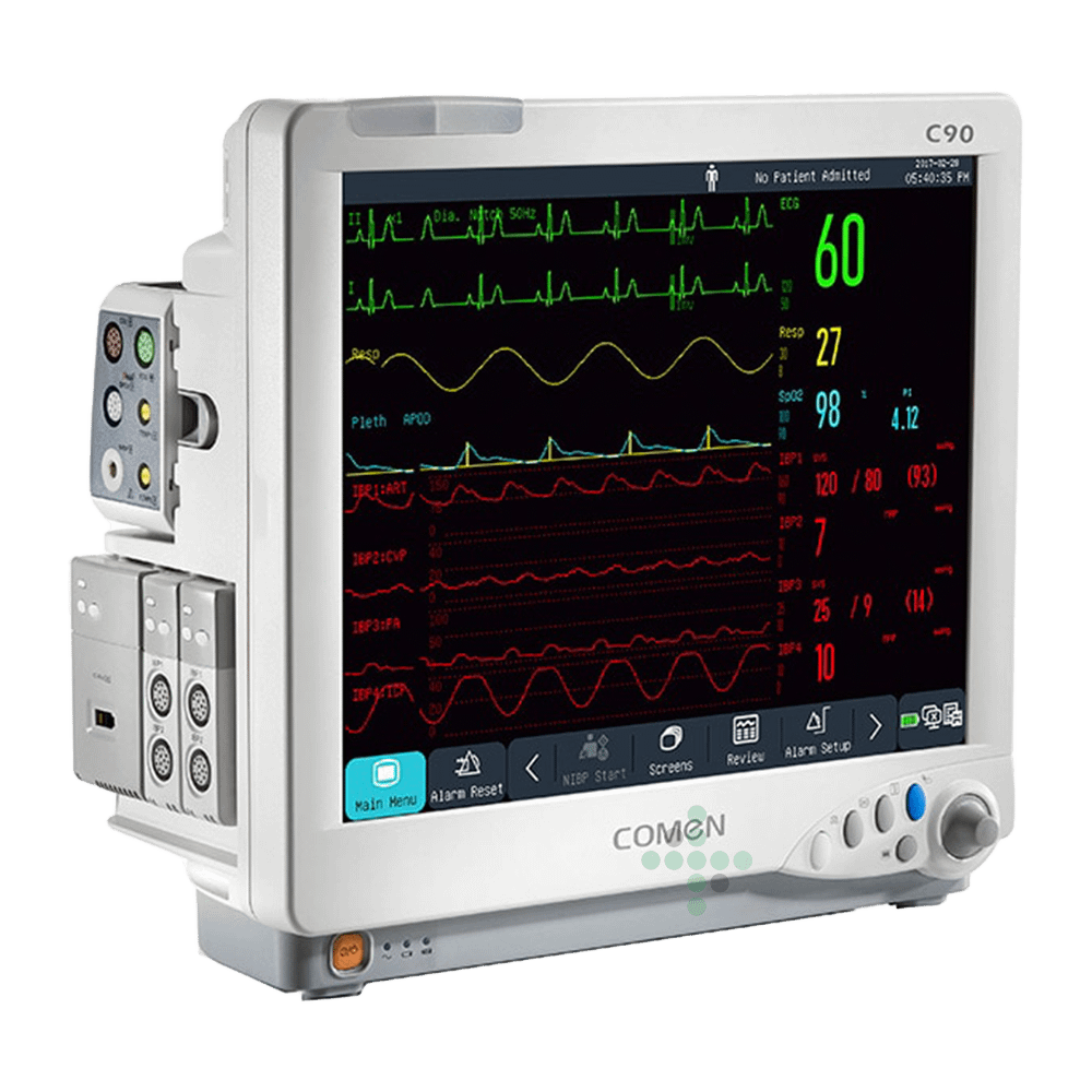 Comen C90 to zaawansowany monitor parametrów życiowych wykorzystywany głównie w opiece krytycznej i innych środowiskach klinicznych, w których wymagane jest szczegółowe monitorowanie stanu pacjenta. Ten modułowy monitor umożliwia podłączenie różnych modułów pomiarowych, dzięki czemu jest bardzo elastycznym narzędziem do monitorowania różnych parametrów.