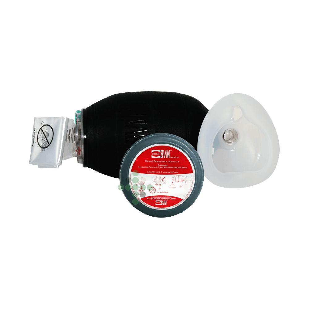 Pakiet Pocket BVM zawiera torbę, maskę, zawór pacjenta i torbę ze zbiornikiem – wszystko, czego ratownik medyczny potrzebuje do przeprowadzenia resuscytacji.