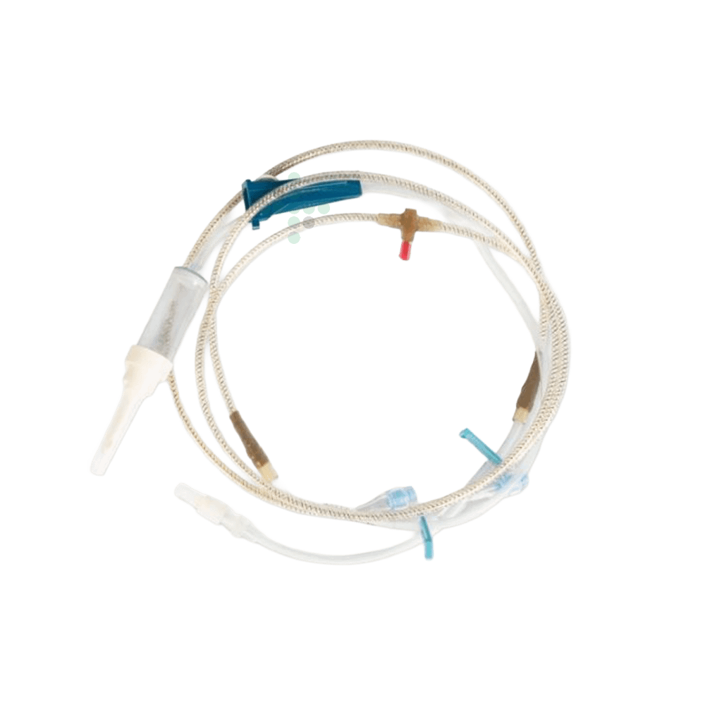 Uwaga: NIE JEST PRZEZNACZONY do samodzielnego stosowania z produktami krwiopochodnymi. Ścieżka płynu i obszary pod końcówkami ochronnymi są sterylne. NIE stosować na sterylnym polu. Nie używać, jeśli końcówki nie są na miejscu. Wymieniać rurki zgodnie z wytycznymi CDC i/lub protokołami instytucjonalnymi.