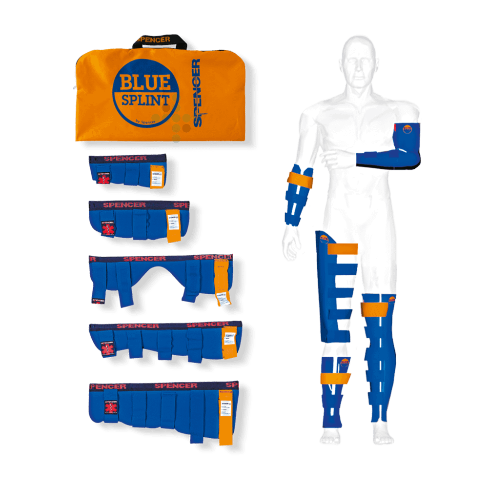 Zestaw Spencer Blue Splints Kit to niezbędny zestaw unieruchamiający zaprojektowany, aby pomóc ratownikom medycznym skutecznie ustabilizować podejrzane złamania kończyn u pacjentów, zmniejszając ból i ryzyko dalszych uszkodzeń podczas transportu przed hospitalizacją.